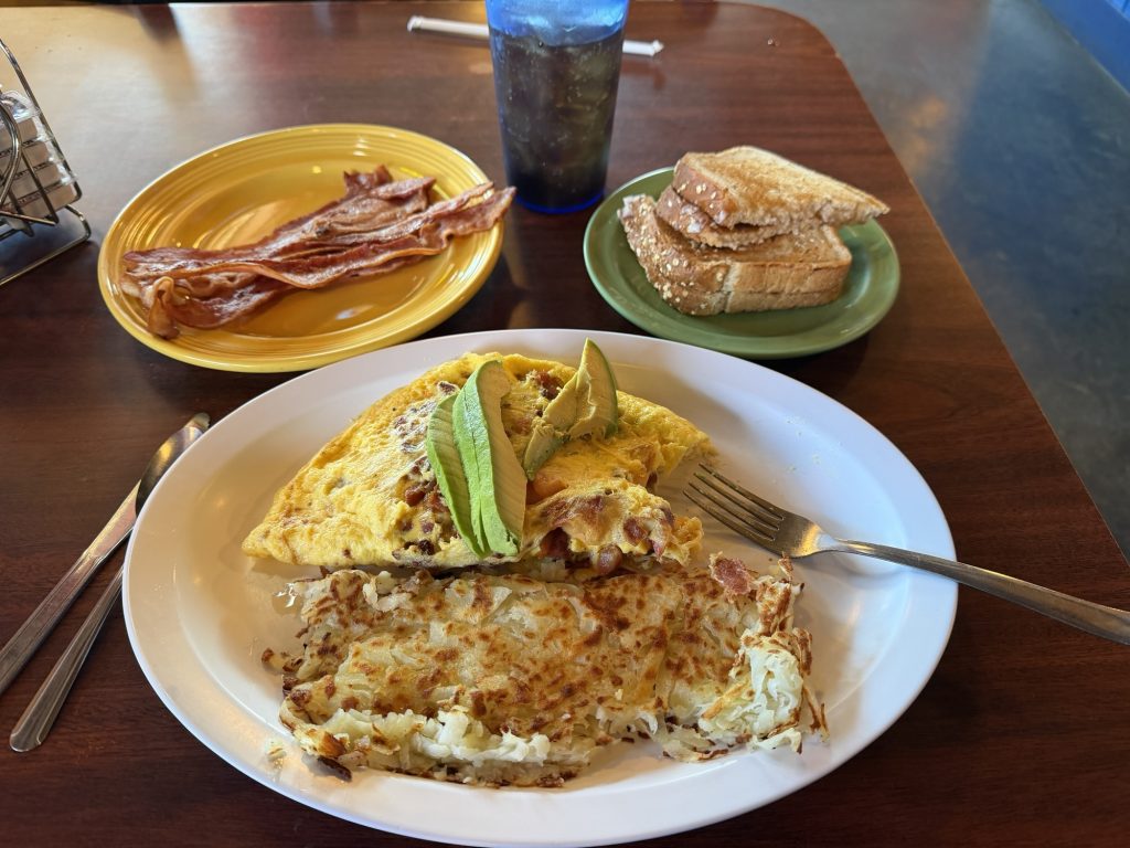 I arrive at PVC just as they opened at 0800 an shuffled in with a few other hikers. They caffe allows hikers to camp on their patio or in the back. One hiker I met had done just that and reported it was really loud due to cars most of the night. PVC is known for having the best burger on trail but unfortunately their lunch menus doesn’t start until 1100 so I settled for breakfast food. I will say their portions are very hiker friendly.
