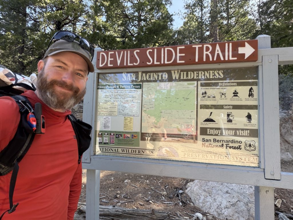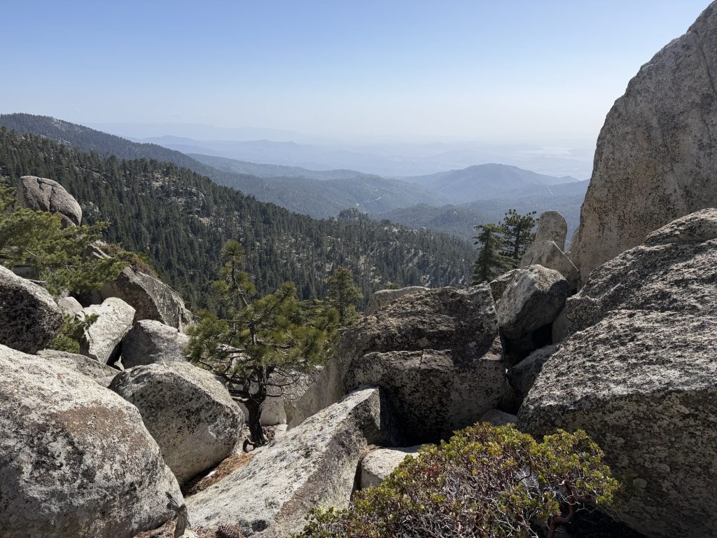 I had made the decision to not climb Mount San Jacinto due to a number of reasons: didn’t want to do the 2000 feet additional accent, it’s not part of the Official PCT, i had already done it in 2018, and I only have 5 days of food to get me to Big Bear which is about 90 ish miles away on trail. In 2018 I spent the night at the summit and had crystal clear views with an amazing sunset. Today everything seems hazy so I’m confident my old memories of the peak would be better than any new ones I would make today.