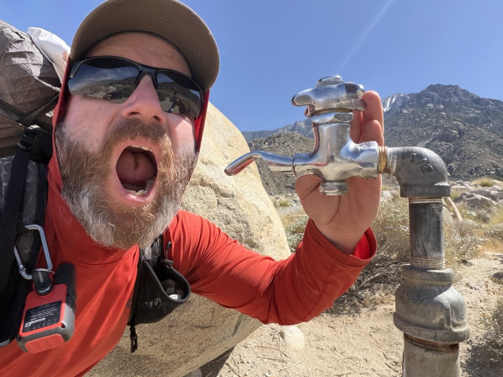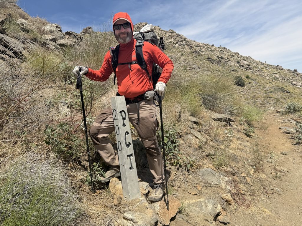 As I descended San Jacinto the trees slowly turned into shrubs that got shorter and shorter removing all shade from the increasingly hot day. There were great views of the mountains on the other side of the valley that I’ll be climbing up over the next few days. The number and length of switch backs is a bit much. From where I camped last night to the road I’m sure is less than 1/2 the distance as the bird flys vs the switchbacks. I crossed paths multiple times with a 77 year old doing a section hike. I can only wish to be healthy enough to do the same at his age. We both crossed the 200 mile marker together but he slowed down and I continued on.