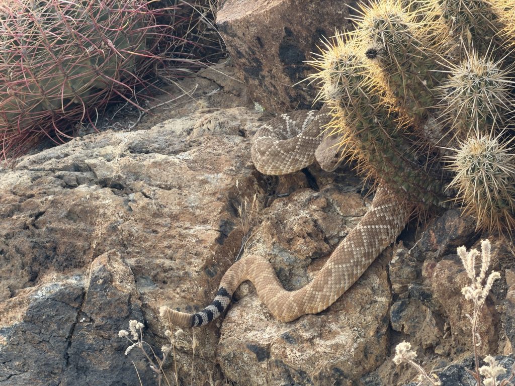I had my second rattle snake encounter. Fortunately this time it gave me lots of warning! It was refused to leave its sunny spot directly beside the trail so I had to climb around on the right of it. Giving it enough space but still allowing me to keep an eye on its location.