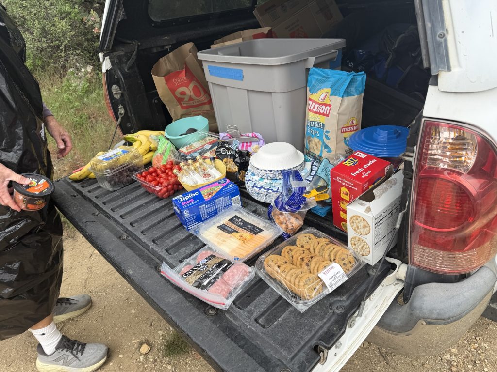 My first stop of the days was at Mikes place. Here you can fill up on water. In some years the owner or a care taker is around and pizza can often appear. Unfortunately this is not one of those years. But fortunately as I was leaving a trail angle named One Way Mike showed up in his truck with an amazing assortment of drinks and food. He wasn’t prepared for the cold so he was wearing a garbage bag turned into wind breaker.